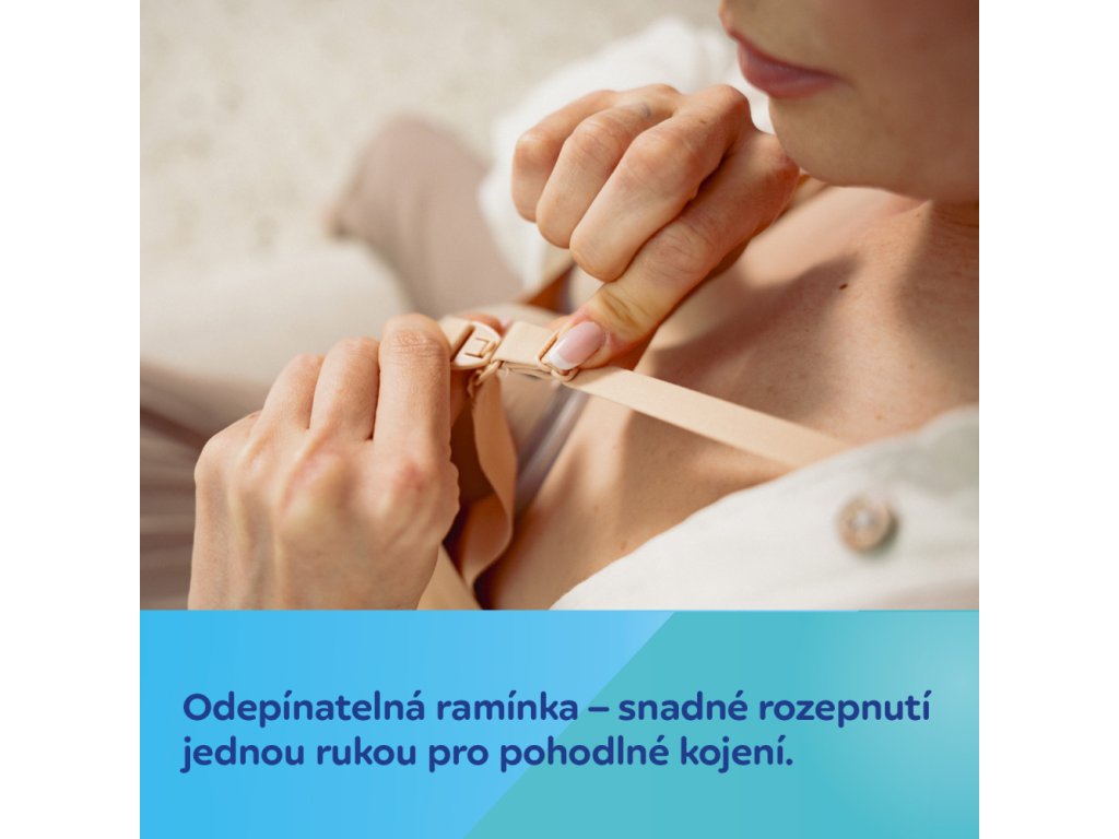 Integrované tvarovací vycpávky zůstávají na svém místě při nošení i praní. Podprsenka bezpečně udržuje odsávačku mateřského mléka a podporuje efektivní odsávání. Je příjemná na kůži a pohodlná i při spánku či nočním kojení. Zvýšená cirkulace vzduchu zajišťuje sucho a pohodlí i při delším sezení/odsávání.