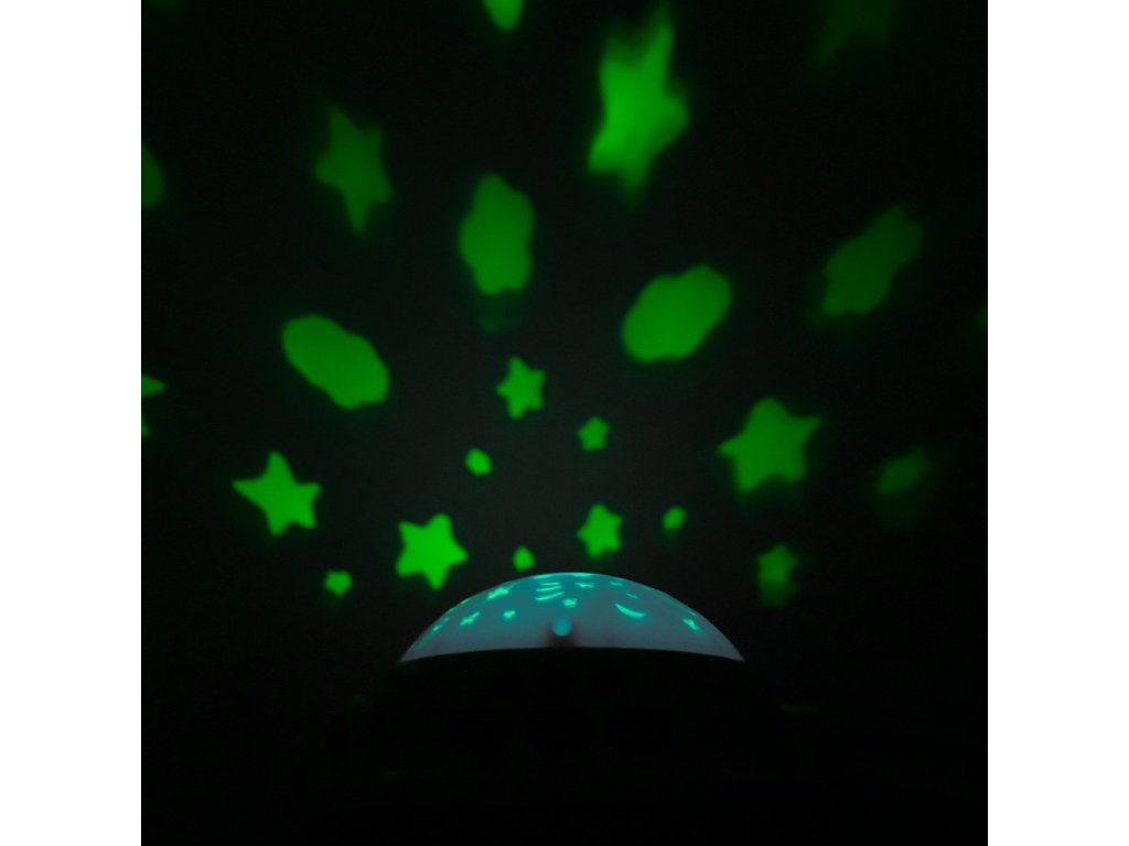 - Kolotoč má světelný projektor s hvězdičkami, který mění barvu a plní také funkci noční lampičky.