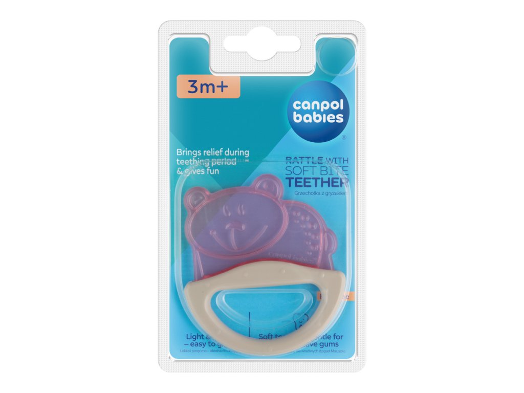 Chrastítko s kousátkem tiší bolest v období růstu zoubků, kdy děťátko svědí dásně a má velkou potřebu kousání. Vyrobeno z měkkého, pružného materiálu, který se přizpůsobuje dětským ústům. Různé tvary a barvy stimulují vizuální motorickou koordinaci děťátka. Má vestavěné chrastítko, které jistě upoutá pozornost každého dítěte.
