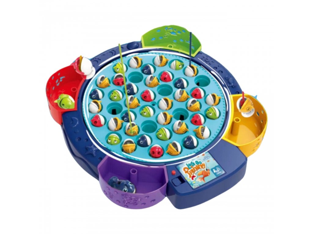- Sada obsahuje: 4 barevné rybářské pruty, herní plán, 24 rybiček
