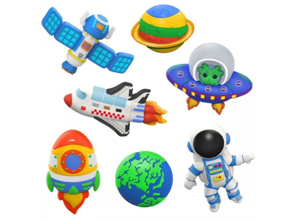 - formu s vesmírnými motivy (raketa, astronaut, UFO, planeta, satelit, Země a další)