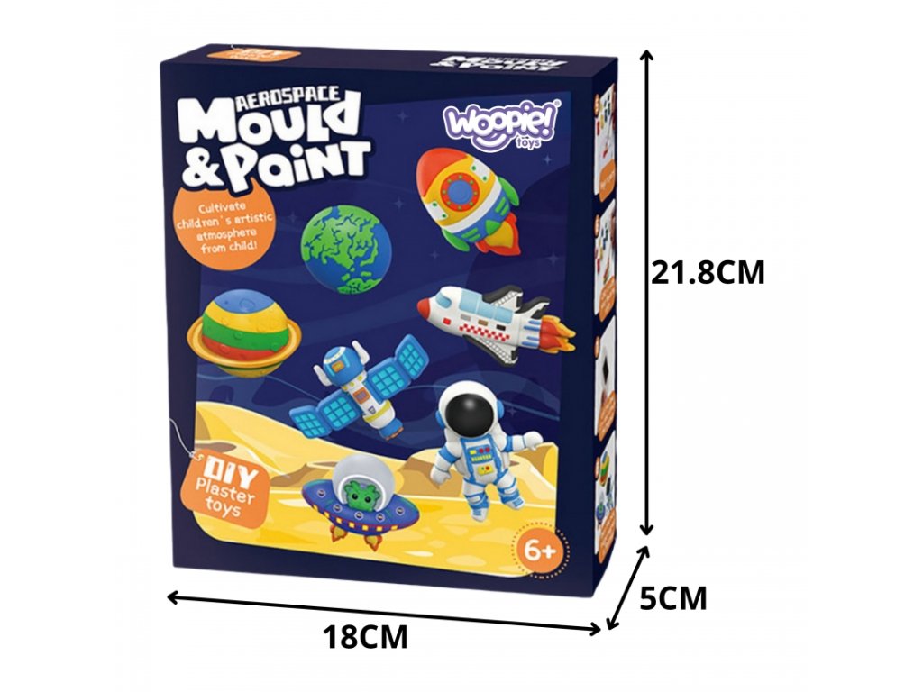 Vezměte své dítě na fascinující cestu vesmírem – aniž by muselo opustit domov! Se sadou Mold & Paint SPACE od Woopie si vaše dítě vytvoří vlastní rakety, astronauty, planety a další kosmické divy ze sádry a poté je namaluje podle svých vlastních nápadů. Vzdělávání a zábava v jednom!