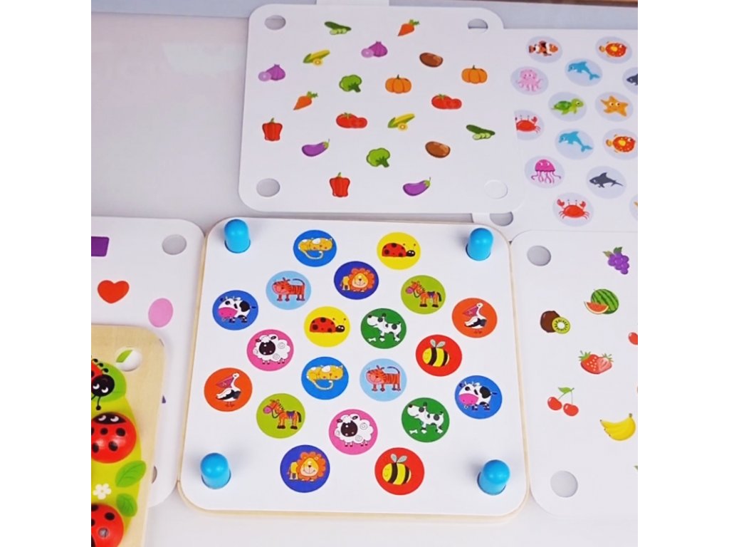 - Logické myšlení a řešení problémů – Hledání a přiřazování karet rozvíjí logické myšlení, vnímavost a schopnost analyzovat vzory a mentálně rozpoznávat obrazy. Hra zapojuje dítě do řešení problémů tím, že si pamatuje uspořádání karet.