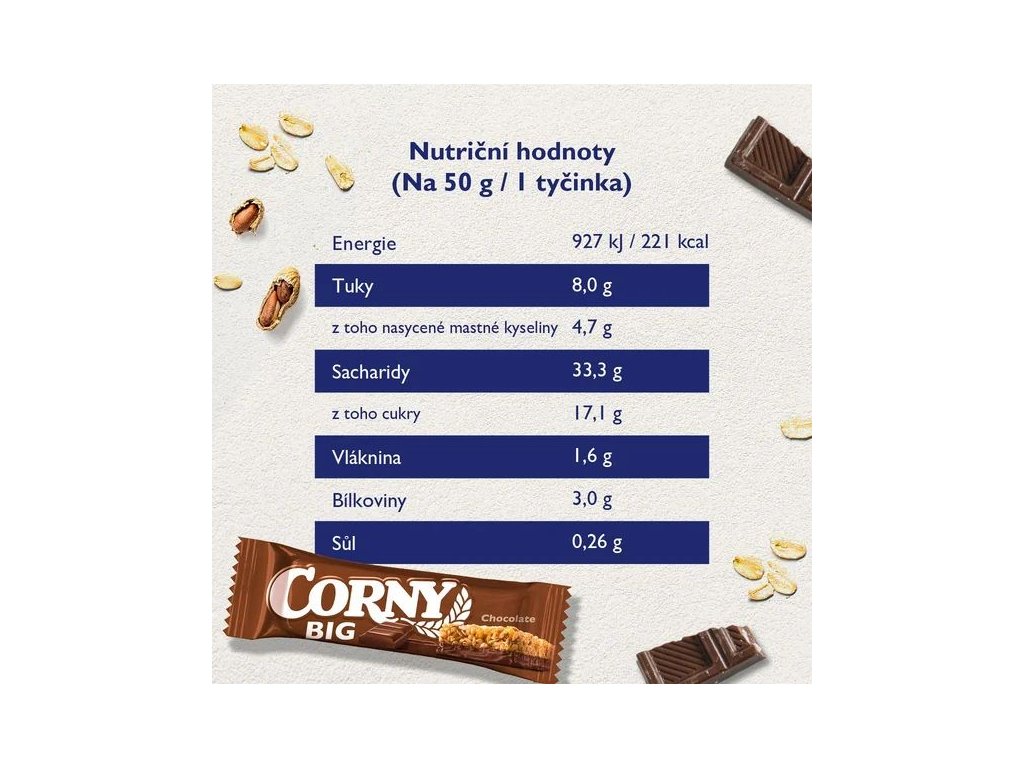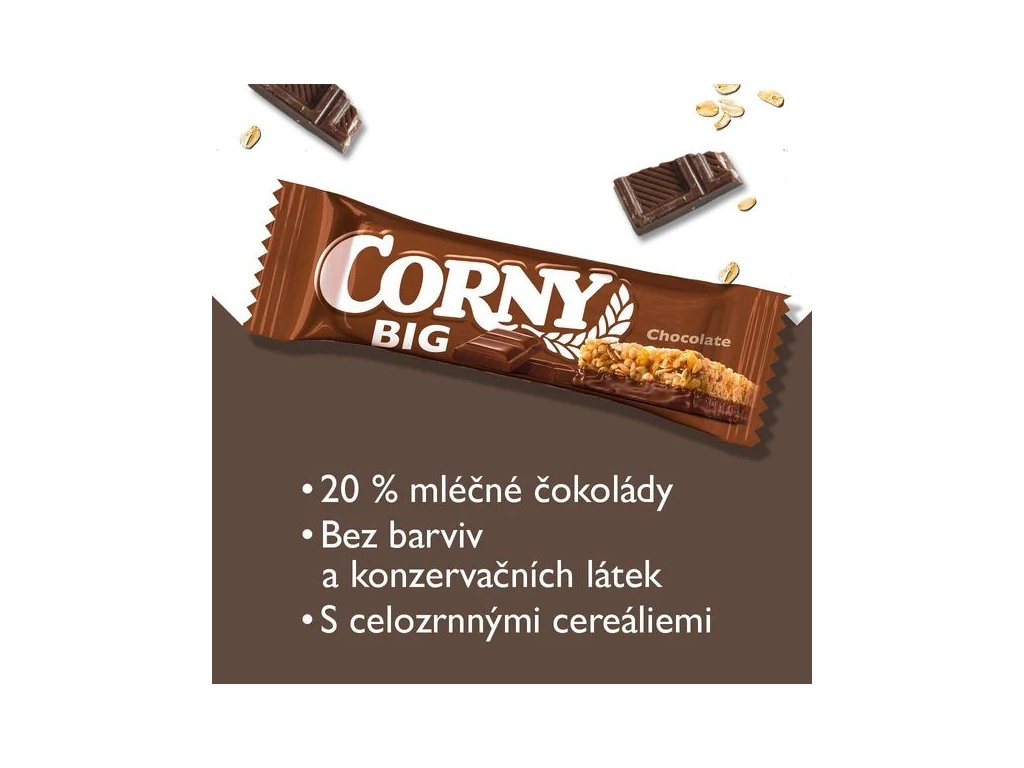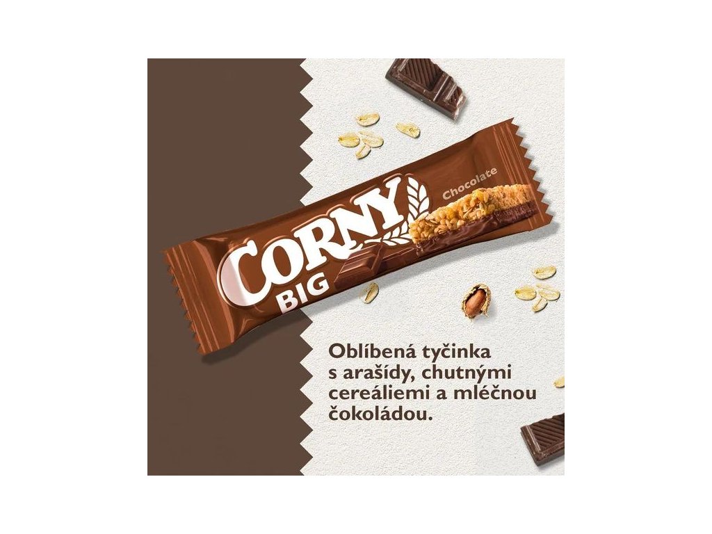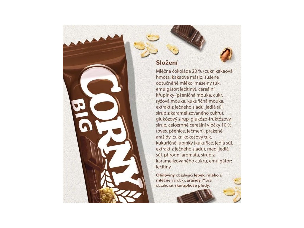 Cereální tyčinka s arašídy a jemnou delikátní čokoládou. To je CORNY BIG v mléčné čokoládě.