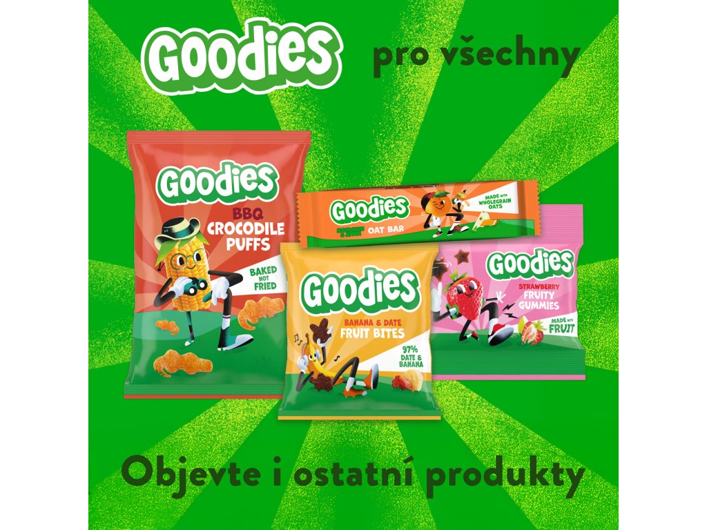 Značka Goodies vyrábí dětské křupky, tyčinky a ovocné plátky.