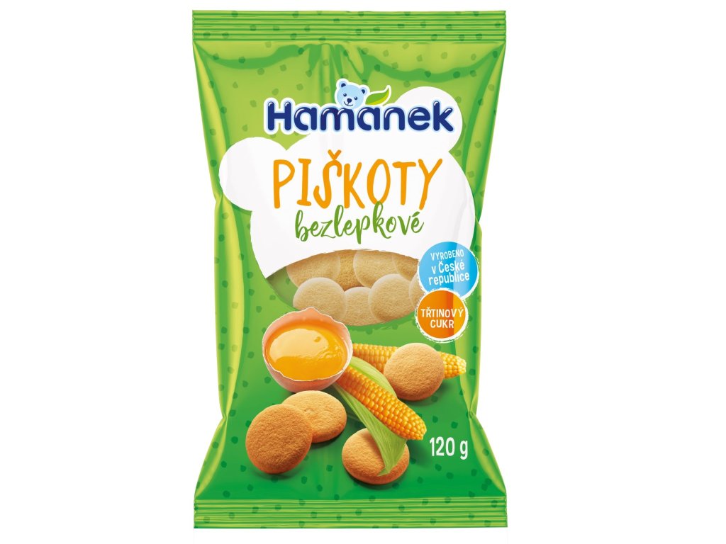 Hamánek Bezlepkové piškoty – jemné, křehké a bez lepku. Jsou vyrobeny z kvalitních surovin bez obsahu lepku, takže jsou vhodné i pro osoby s bezlepkovou dietou.