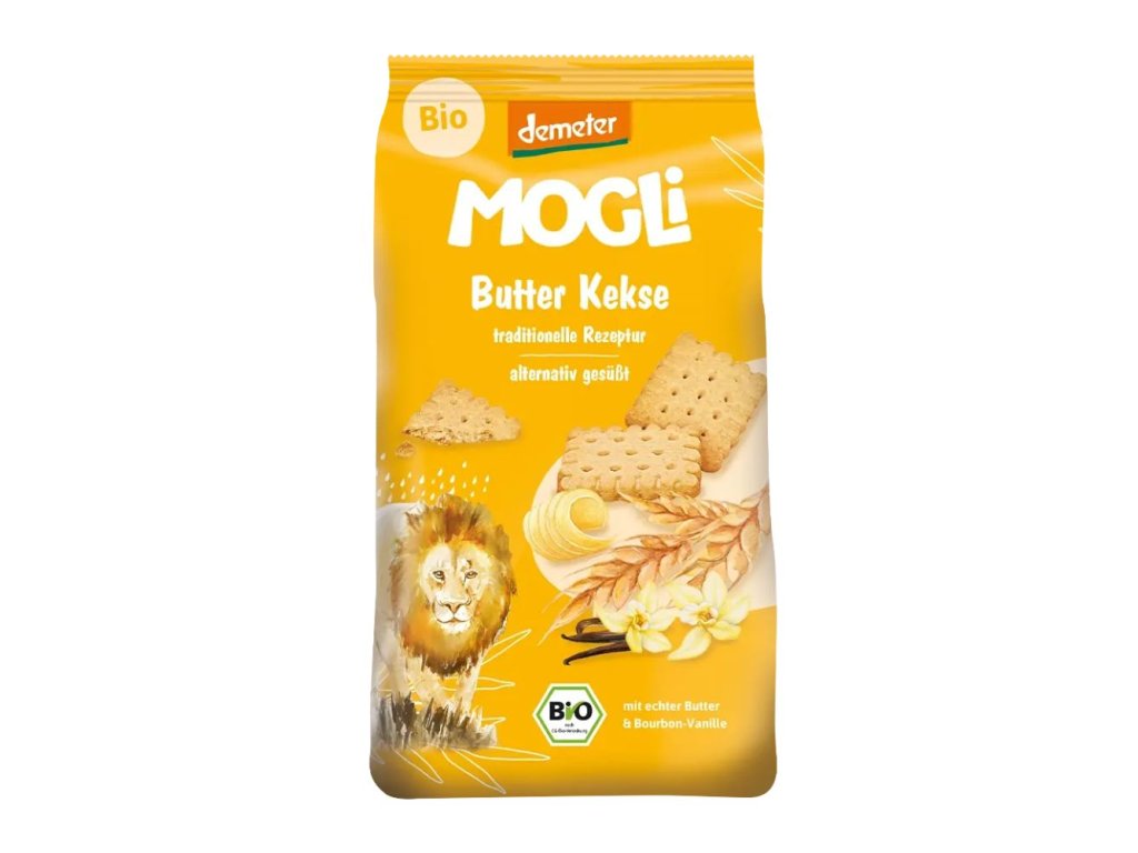 MOGLi BIO Máslové sušenky s vanilkou Bourbon jsou jemné, křehké a vyrobené z kvalitní špaldové mouky, másla a pravé Bourbon vanilky. Díky jednoduchému složení z organických surovin si můžete vychutnat autentickou chuť bez zbytečných ingrediencí. Jejich lahodná máslová textura se rozplývá na jazyku a přirozená chuť vanilky dodává každému soustu neodolatelnou jemnost. Ideální ke kávě, čaji nebo jako svačinka pro celou rodinu.