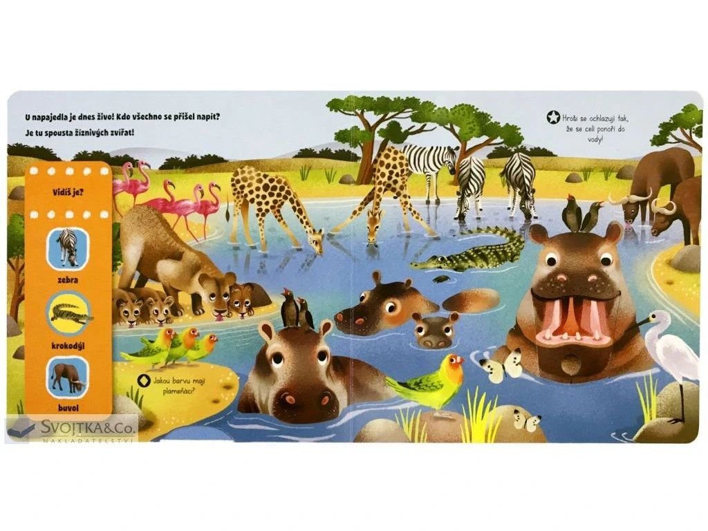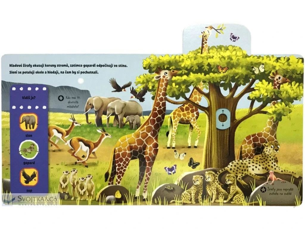 Seznam se s divokými zvířaty z africké savany v této krásně ilustrované knížce s pohyblivými prvky.