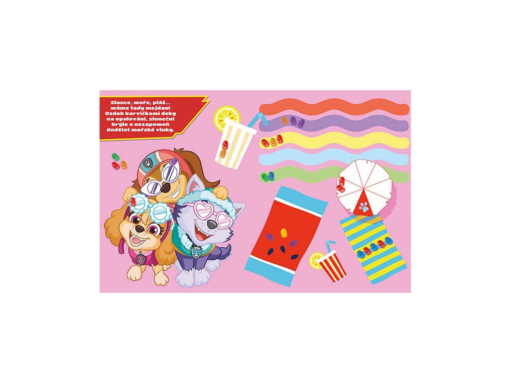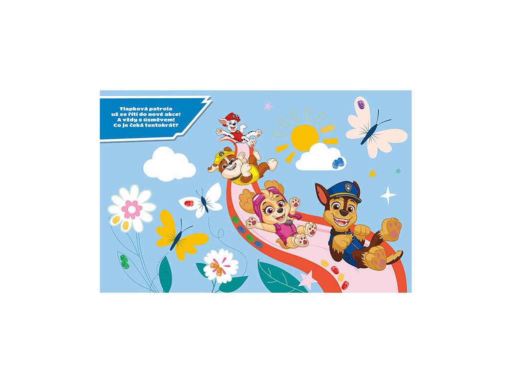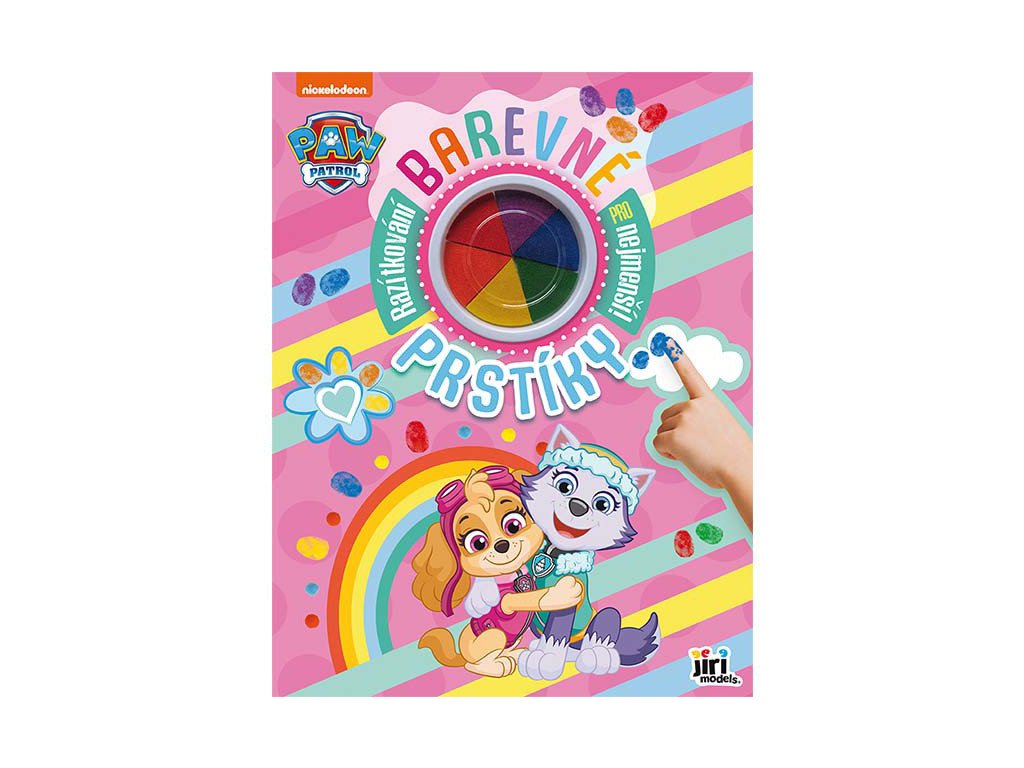 Obsahuje 24 stran plných barevných obrázků s oblíbenými postavičkami z Paw Patrol / Tlapkové Patroly k dorazítkování prstíky a 6 prstových barev.