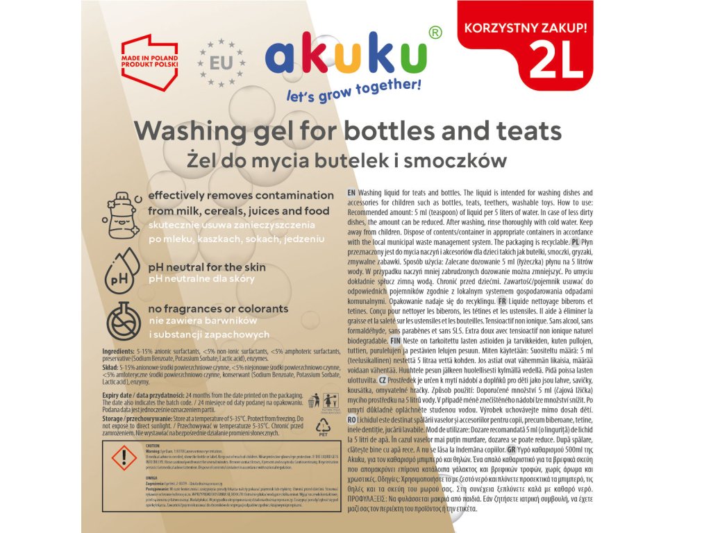 Akuku Mycí gel na lahve a savičky 2l