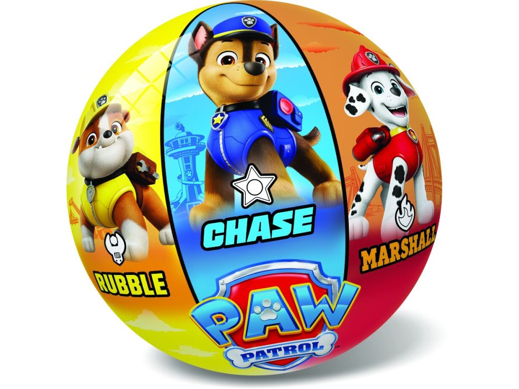 Gumový míč o průměru 23 cm s motivem Paw Patrol - Tlapková patrola. S míčem si můžeš hrát doma i venku.