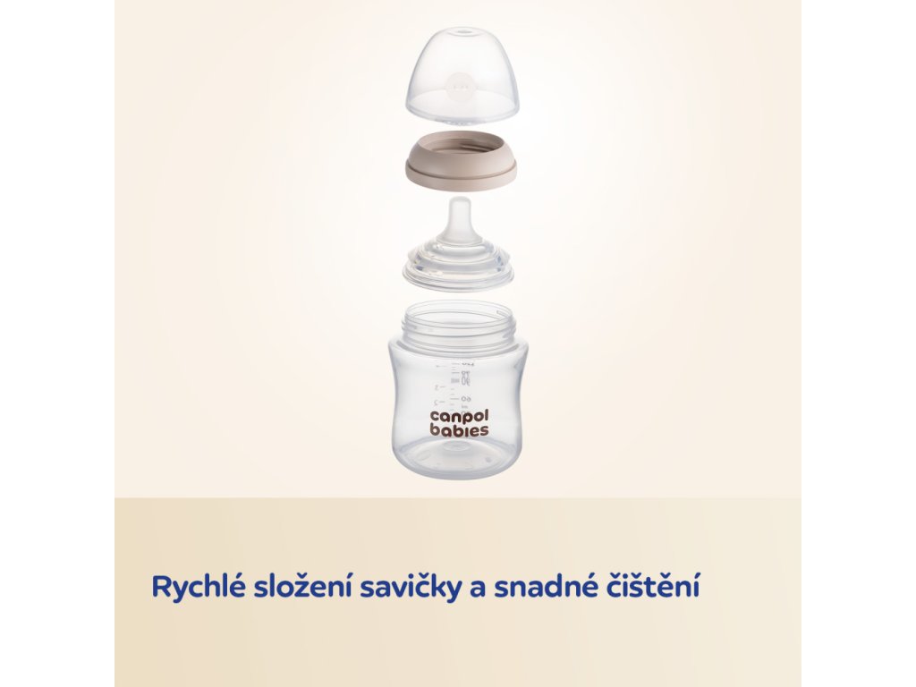 Je vyrobena z vysoce kvalitního silikonu bez BPA, jehož tvar a textura napodobují matčinu bradavku. Je lehká, praktická a snadno se čistí – doporučujeme používat ekologický čistič lahví a saviček Canpol babies (katalogové číslo: 1/500).