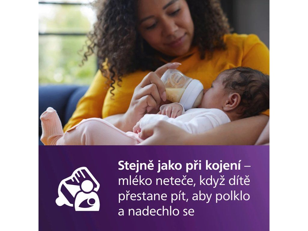 Savička Natural Response funguje v souladu s přirozeným rytmem krmení dítěte, takže lze snadno kombinovat kojení a krmení z lahve. Má unikátní otvor, který uvolňuje mléko pouze tehdy, když dítě aktivně pije. Když tedy dítě pití přeruší, aby polklo a nadechlo se, tok mléka se přeruší také.