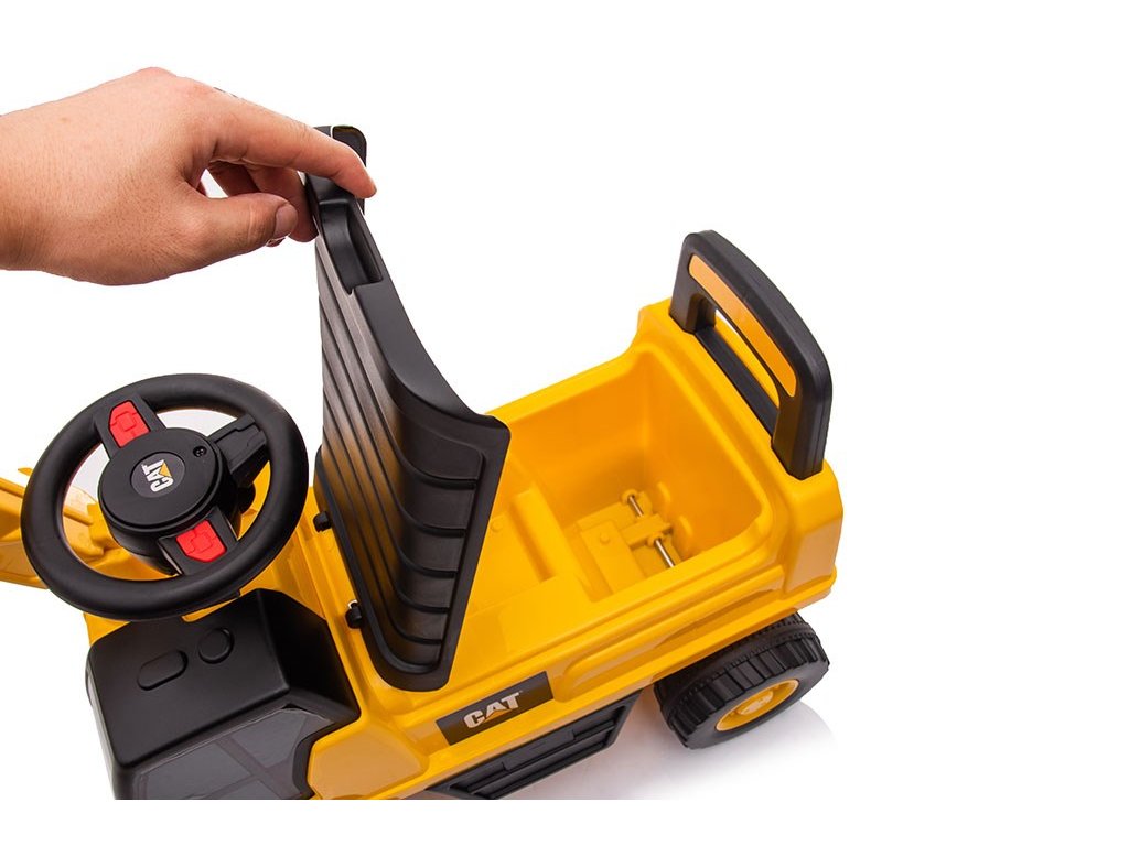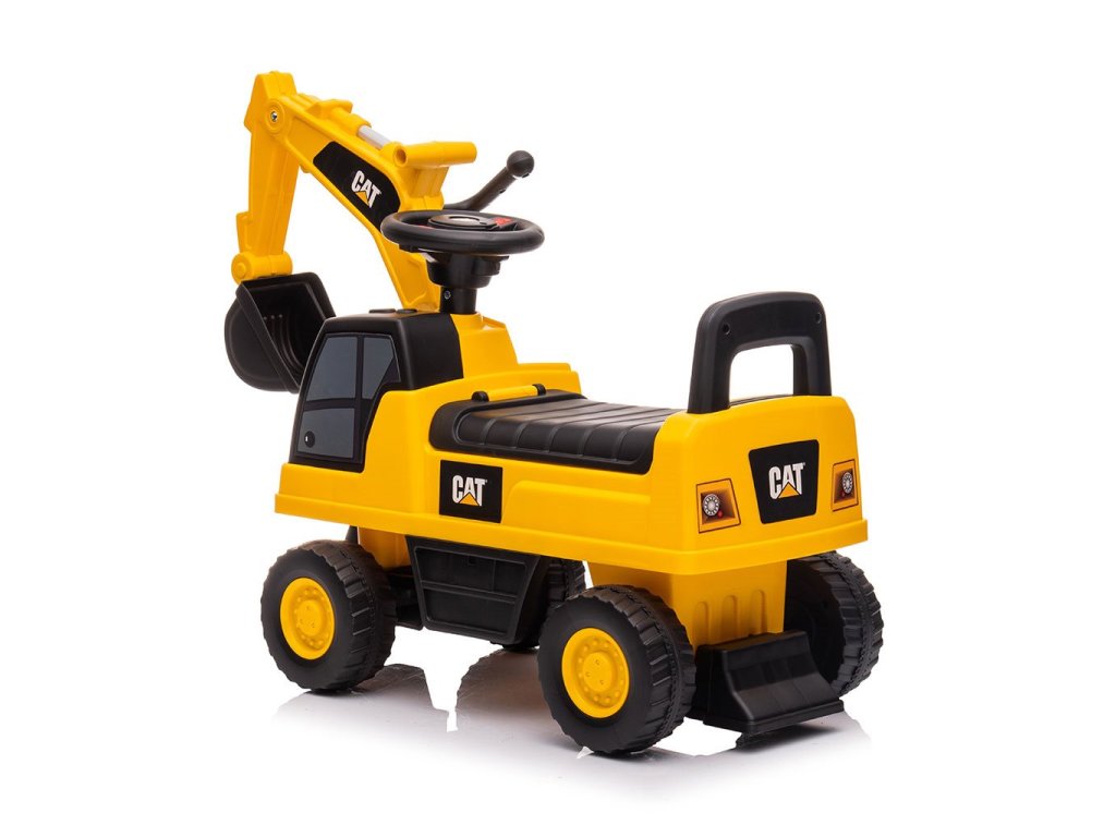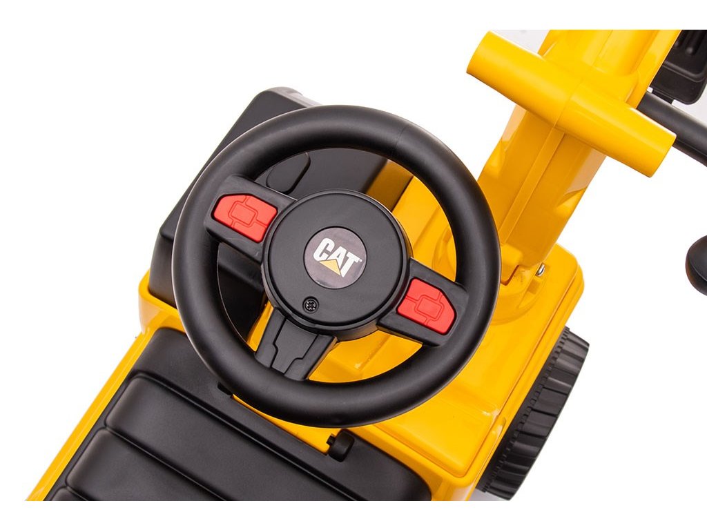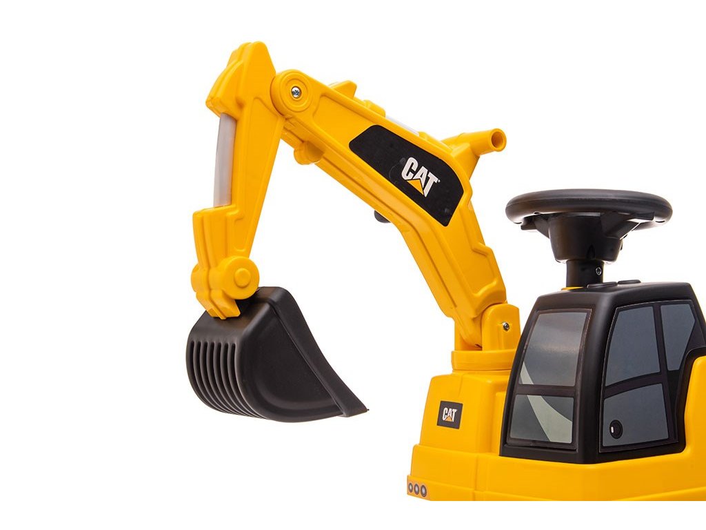 Dětské odrážedlo CAT bagr je vyrobené z kvalitního plastového materiálu. Jeho vzhled upoutá pozornost nejen každého dítěte, ale i rodiče. S autíčkem si děti užijí spoustu legrace a zábavy protože má vzhled skutečného Caterpillaru, komfortní široké sedadlo s úložným prostorem, volant a kvalitní plastová kola. Odrážedlo je také vybaveno tlačítky na volantu se zvukovými efekty. Baterie nejsou součástí balení (2x AA 1.5V).