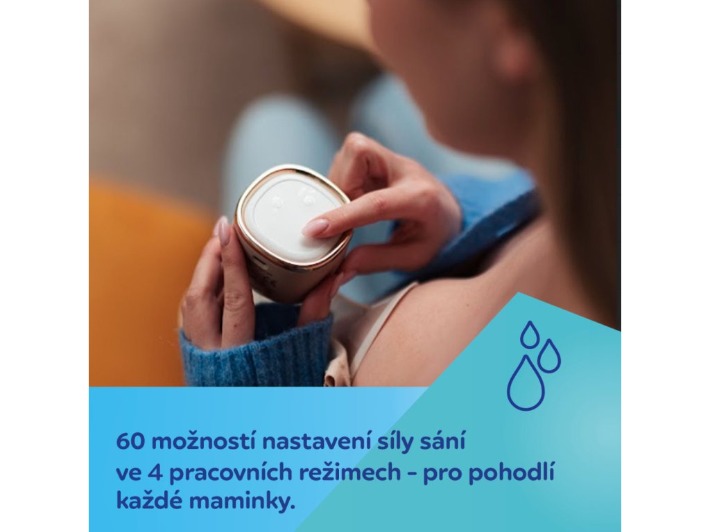 - 60 nastavení síly sání – pomáhá přizpůsobit sílu odsávání individuálním potřebám každé maminky.