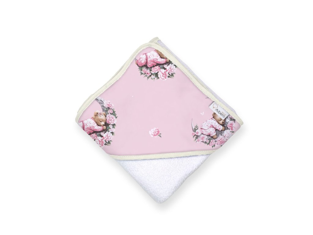 Osuška je vyrobena z nadýchaného, měkkého a příjemného froté, které chrání dítě před chladem a poskytuje příjemný pocit tepla po koupání. Osuška má kapuci na hlavu.