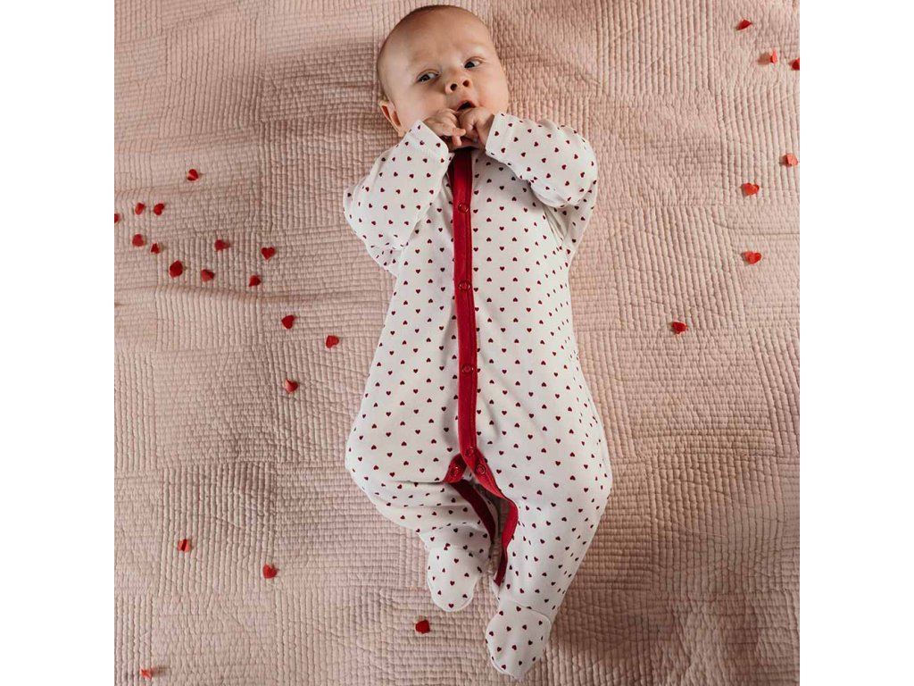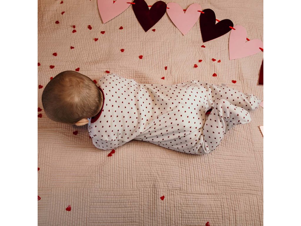 Dětský overal s nožičkami z kolekce "LOVE ". Dětské overaly s nožičkami jsou nepostradatelnou součástí každé výbavičky pro novorozence. Skvělé pro děti, které se v noci rády odkrývají během spánku. Overaly pro novorozence jsou velmi pohodlné jak pro rodiče, tak i pro dítě.