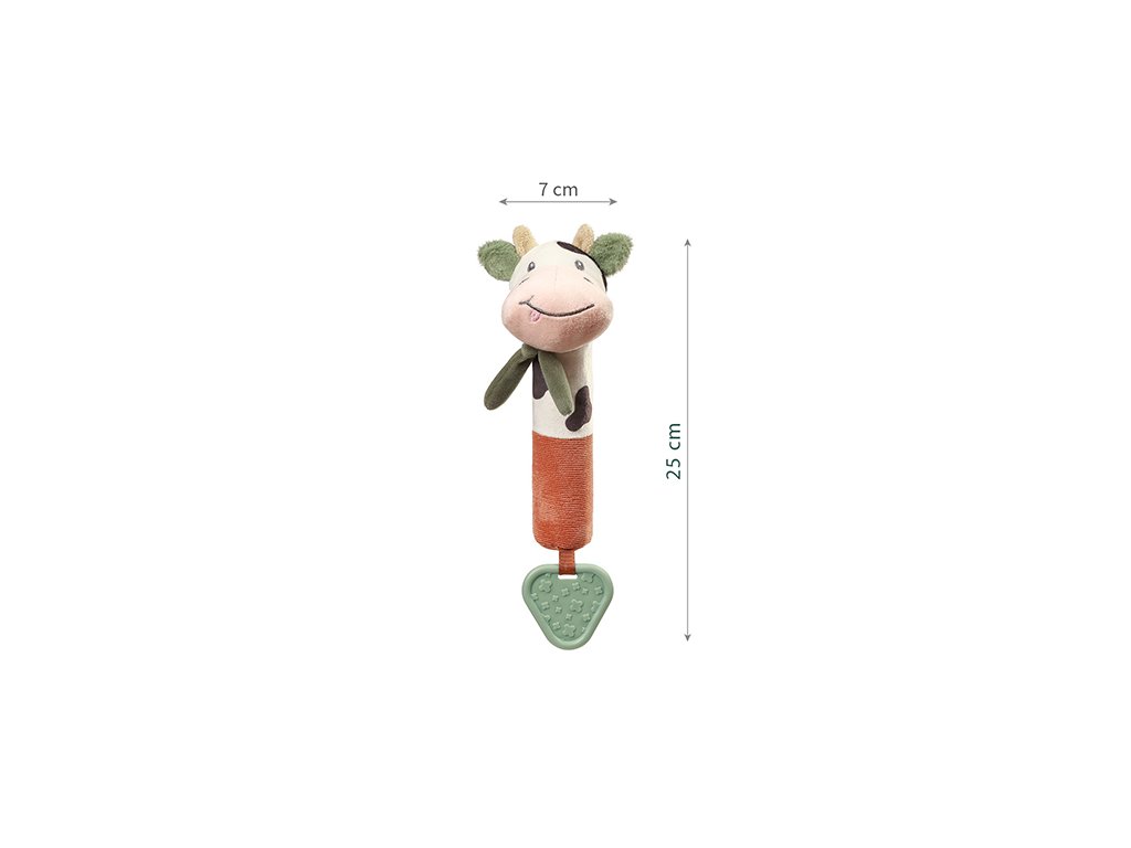 Rozkošná plyšová pískačka Cow Bingo je dětská hračka, která probouzí zvědavost a podporuje její vývoj. Vaše dítě objevuje svět všemi smysly – díváním se, dotýkáním se, posloucháním a žvýkáním.