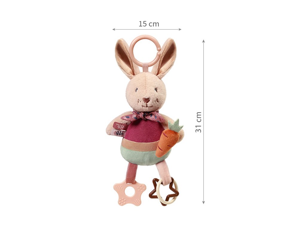 Senzorická plyšová hračka je okouzlující hračka pro miminka, která probouzí zvědavost, stimuluje vnímání a zlepšuje jemnou motoriku. Díky jednoduchému klipu jej můžete připevnit na postýlku, kočárek, korbičku nebo autosedačku a doprovázet tak vaše dítě doma i na procházkách.