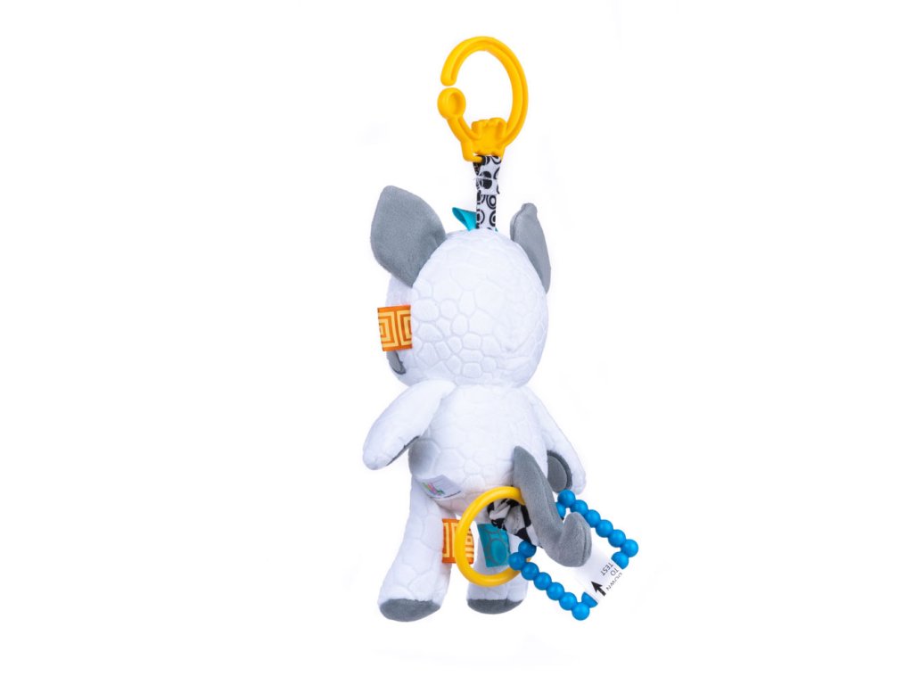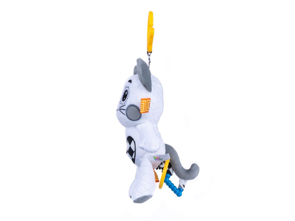 Tento kontrastní koťátko ukolébá nejmenší milované děti sladkou ukolébavkou. Díky kontrastním vzorům a barevným visačkám s různými texturami, které stimulují zrak a hmat dítěte, připevňovací kousátka přinesou úlevu dětem, kterým se prořezávají zoubky. Díky praktické sponě můžete koťátko připevnit kamkoli, aby mohlo vaše dítě okouzlit okouzlujícími zvuky!