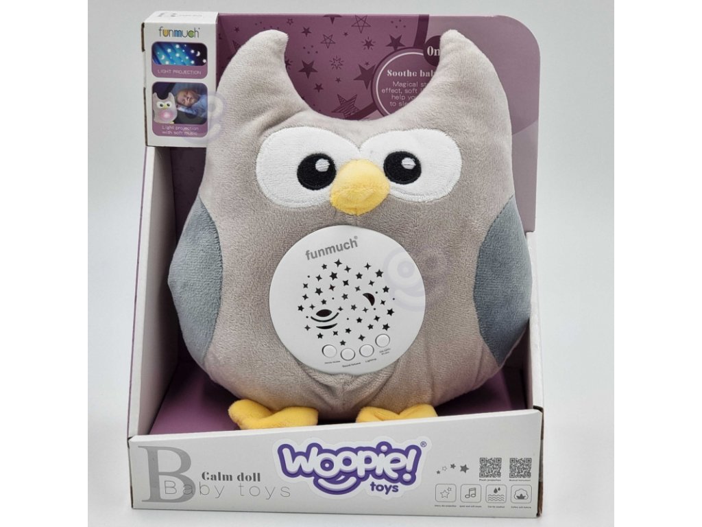 Plyšový sovička od značky Woopie bude spacím společníkem vaše miminka . Maskot je ideální pro miminka a větší děti , které nerady usínají samy. Sova bude dokonalým přítelem pro dobré sny a zachráncem před příšerkami ve skříni. Plyšák má 4 funkce . Po zapnutí uslyšíme příjemné melodie a bříško se začne třpytit různými barvami. Po stisknutí tlačítka "White Nose" uslyšíte různé zvuky a tlukot srdce . Hračka má také až 10 různých ukolébavek a možnost nastavení 3 úrovní hlasitosti , abyste přizpůsobili zvuk preferencím dítěte a zajistili, že se během spánku nebude budit. Hračka je vhodná pro miminka, proto je vyplněna měkkou vatou. Navíc lze plyšovou hračku bezpečně a snadno vyčistit odstraněním mechanismu a snadným opětovným složením. Díky tomu bude moci starší dítě používat hračku jako maskota bez mechanismu. Tuto sovu si zamiluje každé dítě !