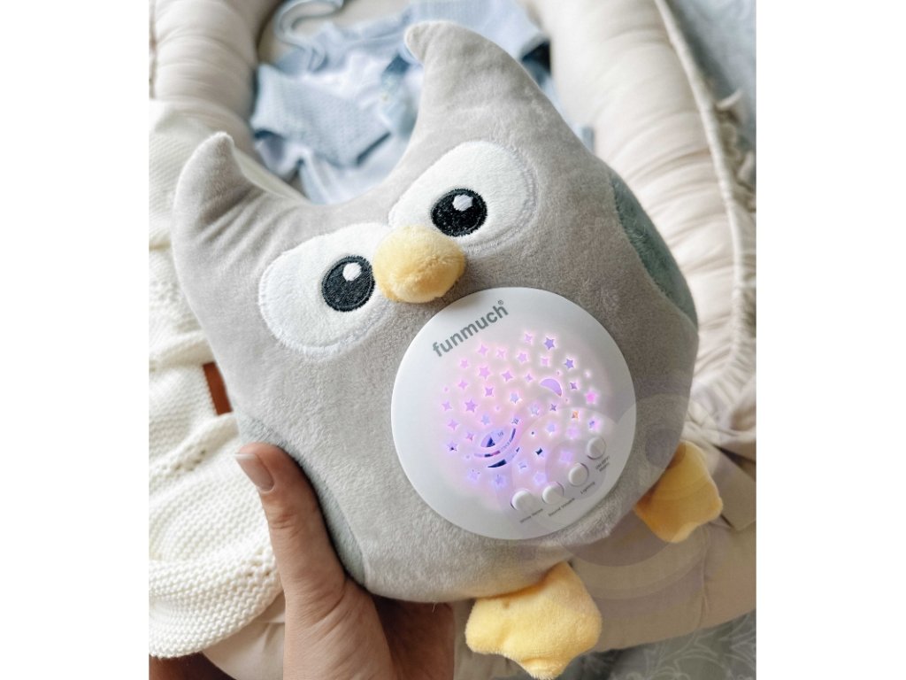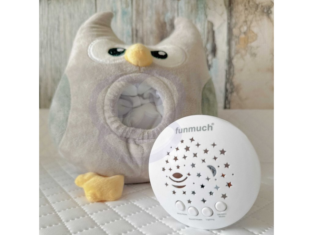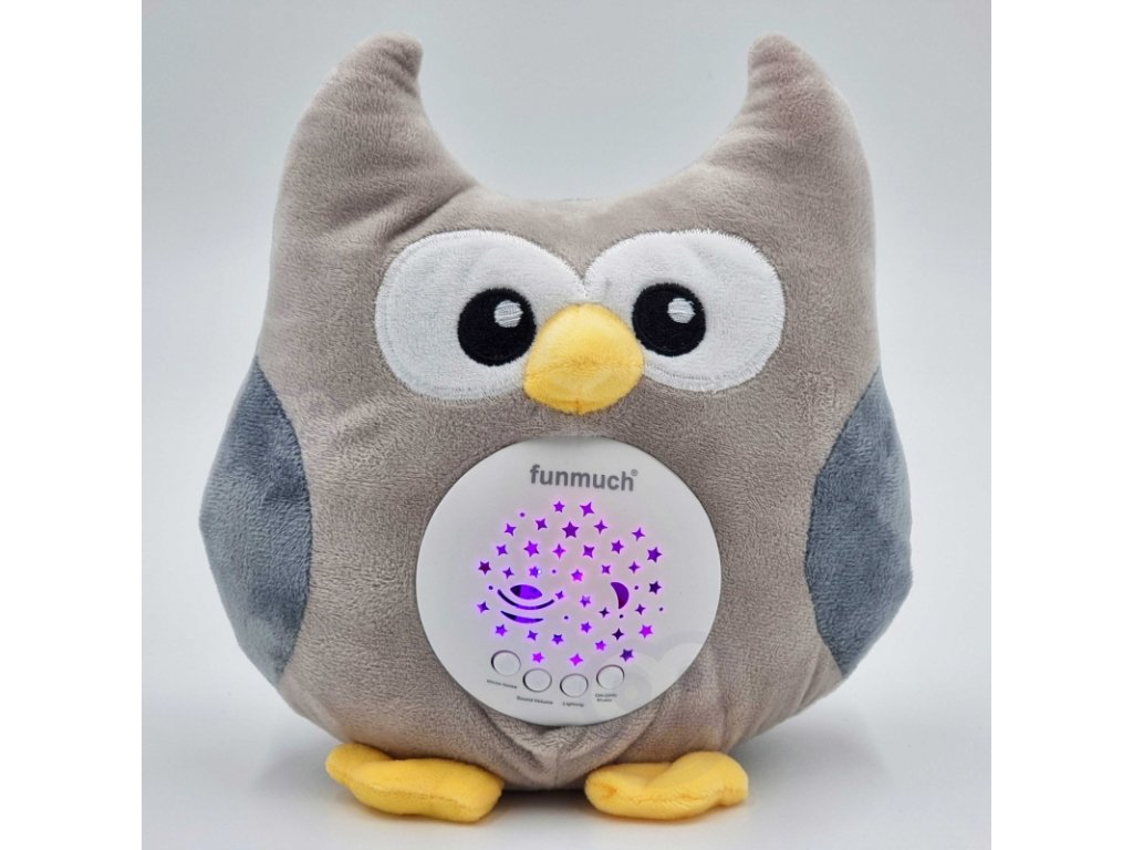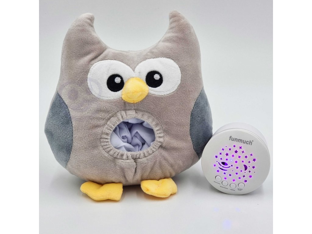 Plyšový sovička od značky Woopie bude spacím společníkem vaše miminka . Maskot je ideální pro miminka a větší děti , které nerady usínají samy. Sova bude dokonalým přítelem pro dobré sny a zachráncem před příšerkami ve skříni. Plyšák má 4 funkce . Po zapnutí uslyšíme příjemné melodie a bříško se začne třpytit různými barvami. Po stisknutí tlačítka "White Nose" uslyšíte různé zvuky a tlukot srdce . Hračka má také až 10 různých ukolébavek a možnost nastavení 3 úrovní hlasitosti , abyste přizpůsobili zvuk preferencím dítěte a zajistili, že se během spánku nebude budit. Hračka je vhodná pro miminka, proto je vyplněna měkkou vatou. Navíc lze plyšovou hračku bezpečně a snadno vyčistit odstraněním mechanismu a snadným opětovným složením. Díky tomu bude moci starší dítě používat hračku jako maskota bez mechanismu. Tuto sovu si zamiluje každé dítě !