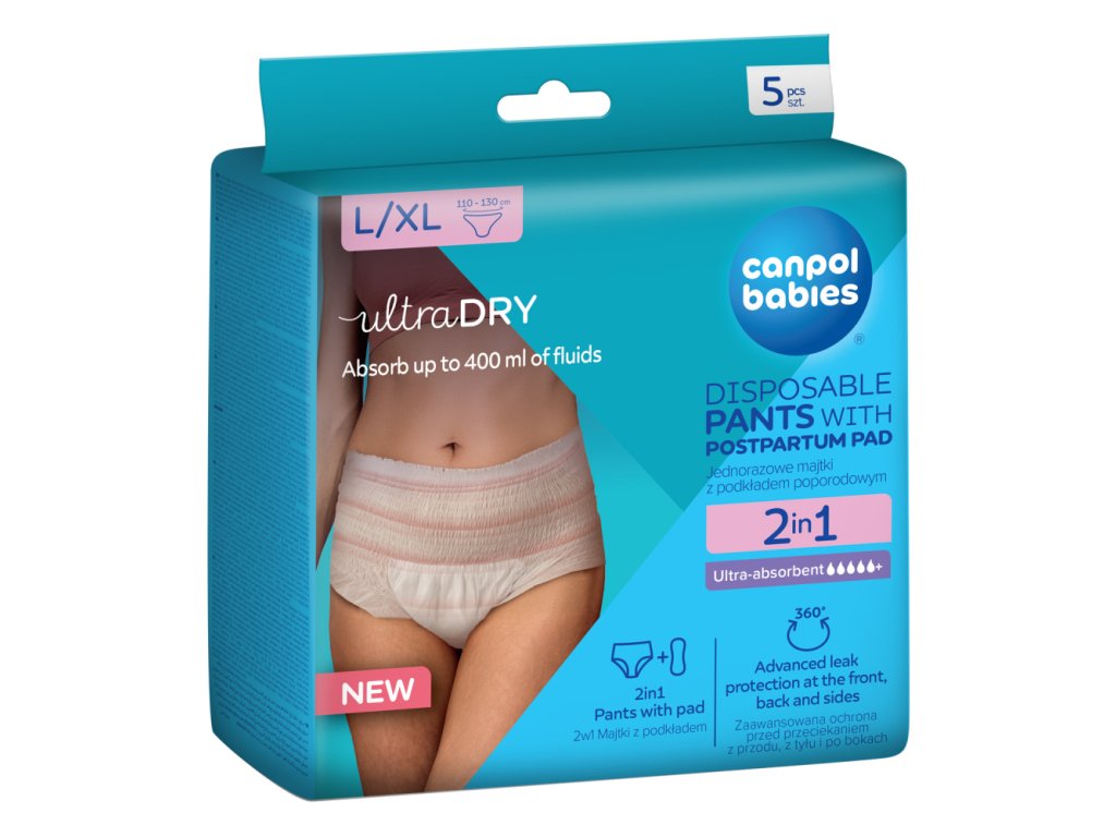 Canpol babies Jednorázové poporodní kalhotky s vložkou 2v1 L/XL (5ks)