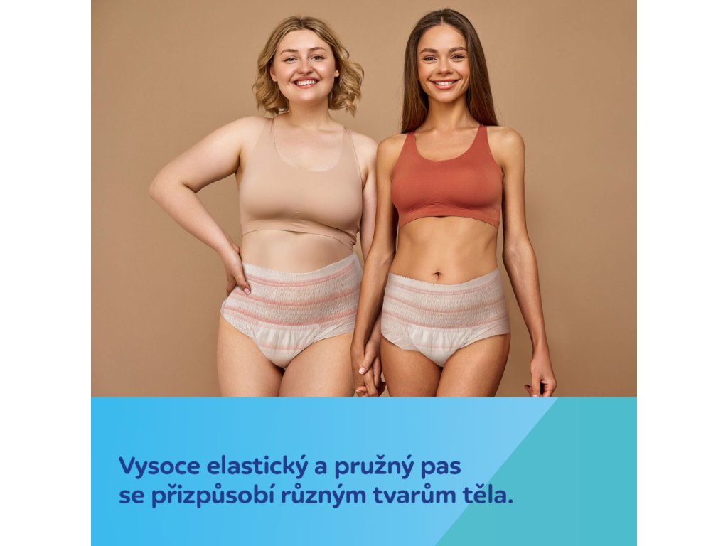 Kalhotky absorbují až 400 ml tekutiny a poskytují tak žádoucí pocit sucha. Pokročilá 360° ochrana proti úniku zajišťuje plnou ochranu ze všech stran, a to i vleže. Prodyšný design umožňuje pokožce volně dýchat, čímž se minimalizuje riziko podráždění, zatímco výjimečně měkká vnitřní vrstva je bezpečná i pro tu nejcitlivější pokožku.