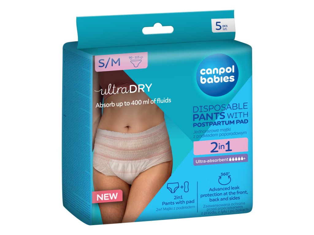 Canpol babies Jednorázové poporodní kalhotky s vložkou 2v1 S/M (5ks)