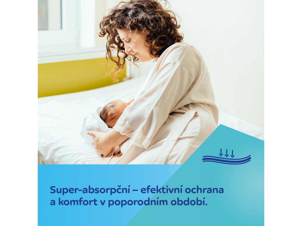 Vysoce absorpční vložky jsou určeny ženám v období po porodu. Široký profilovaný tvar a tenká vrstva použitého materiálu zajišťují diskrétnost při nošení a důkladnou ochranu v ležící poloze. V balení 10 kusů.