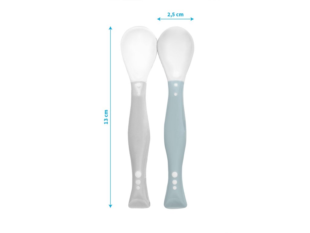Elastická lžička s možností tvarování. Jsou vyrobeny z plastu, díky kterému si pamatují svůj tvar. Jsou ideální pro praváky i leváky. Přizpůsobují se potřebám dítěte při učení samostatného stravování. Jsou vyrobeny z vysoce kvalitních, bezpečných materiálů určených pro styk s potravinami. Lžíce jsou zcela bez bisfenolu A.