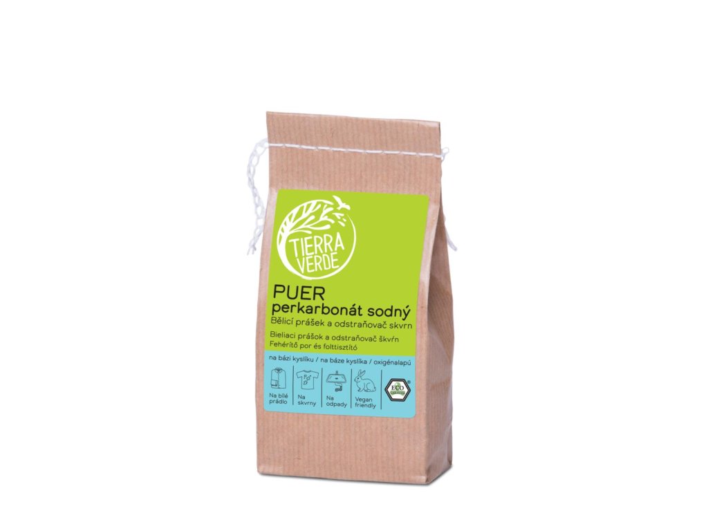 Puer neboli perkarbonát sodný je prací soda (uhličitan sodný) obohacená kyslíkem. Při aktivaci teplou vodou se uvolňuje kyslík a tvoří peroxid vodíku, který má bělicí účinky (rozjasňuje zašlou bílou barvu, prevence šednutí prádla). Puer se za velkého šumění a pěnění rozkládá na sodu, vodu a kyslík, takže je biologicky zcela odbouratelný a skvěle vychází i s čističkou vody nebo septikem. Tyto bílé kuličky vám usnadní praní i úklid. Jsou prostě jednoduše geniální.