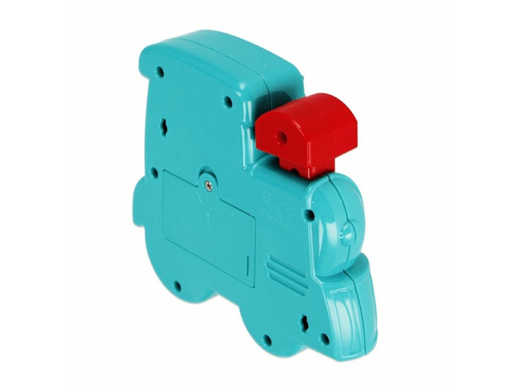 - Lokomotiva má zvukové a pohybové efekty, pohyblivý komín signalizující blížící se vlak a pohyblivé tlačítkové okénko s průvodčí signalizující odjezd vlaku.