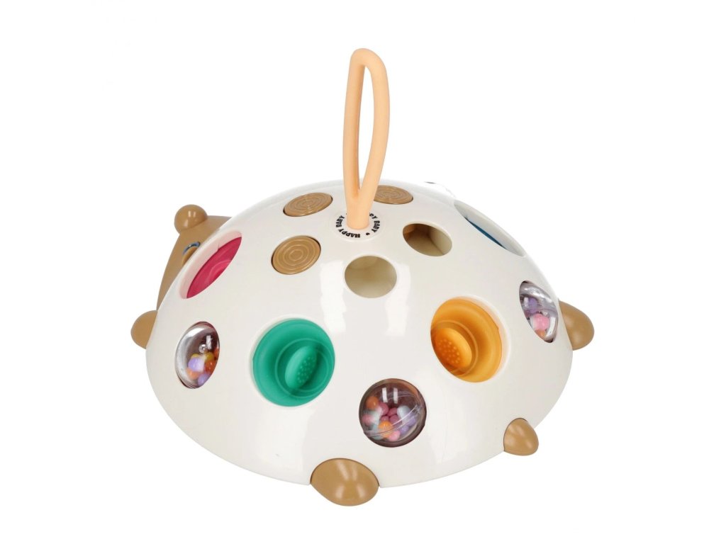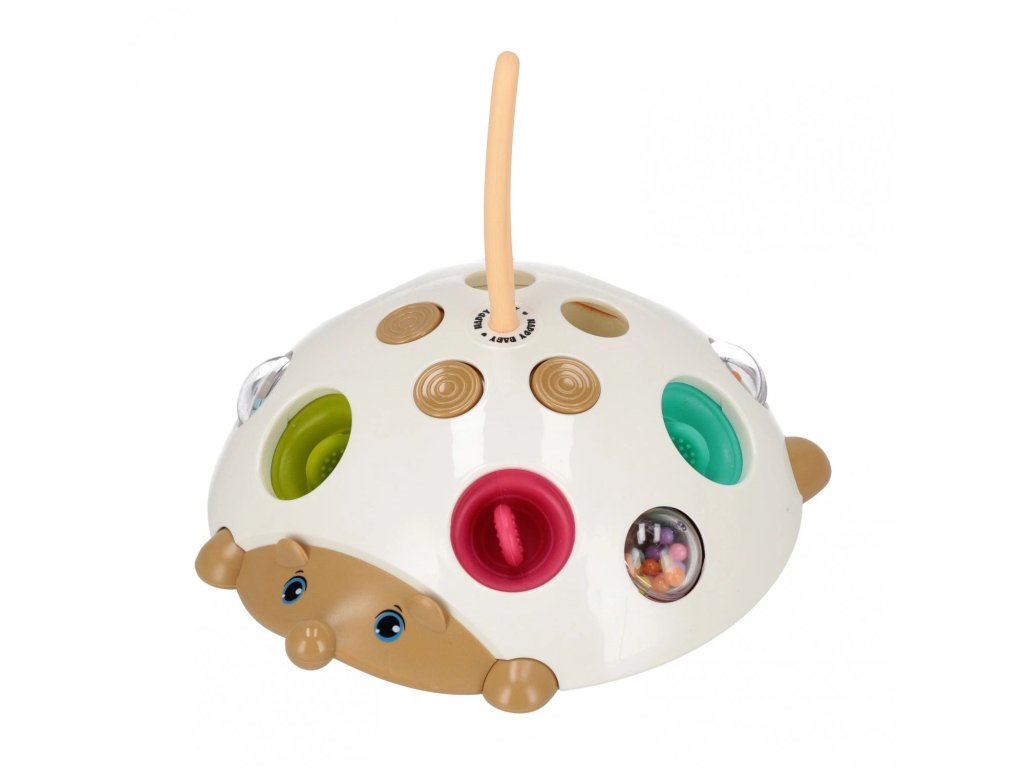 - Potřeba mačkání báječně barevných polí umístěných na zádech ježka, která vydávají specifický zvuk a po chvíli se vracejí do svého původního tvaru, výstupky, za které může dítě táhnout a mačkat je dovnitř, soustřeďují veškerou pozornost dítěte na dlouhou dobu. Hračka umožňuje podporovat rozvoj manuálních dovedností, jemné motoriky a obratnosti.