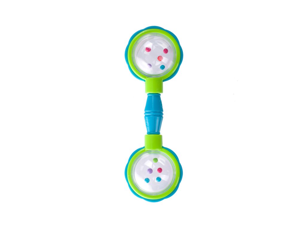 Chrastítko míčky na čince je perfektní volbou pro první hračku pro miminko, protože je lehké a praktické. Pro dítě je snadné jej uchopit a držet ve svých drobných ručičkách. Je vybavena otočnými prvky. Má mírně zaoblené tvary. Průhledné části hračky obsahují malé barevné prvky, které se při hře pohybují a vytvářejí příjemný chrastivý zvuk. Povzbuzuje dítě ke cvičení a hře stimuluje jeho psychomotorický vývoj.