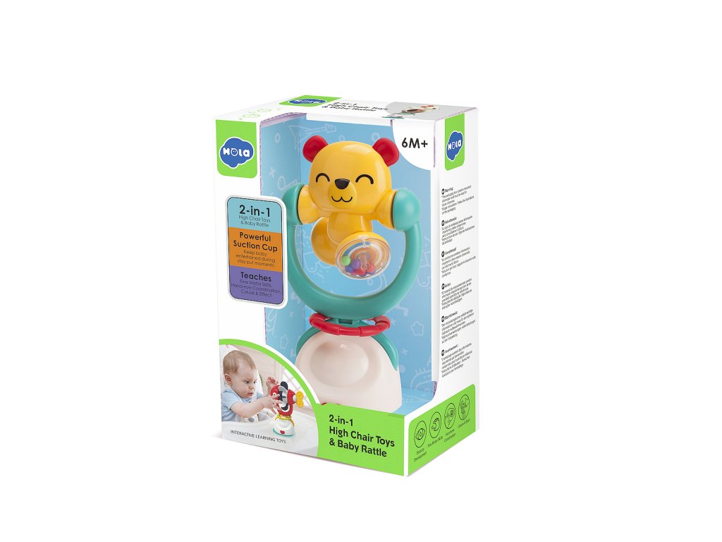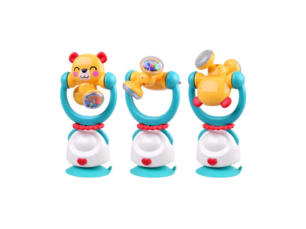 Plastové chrastítko s přísavkou ve tvaru medvídka je barevná interaktivní hračka vytvořená speciálně pro nejmenší děti, která v sobě spojuje funkci hry a podporuje smyslový vývoj batolete. Díky svému okouzlujícímu tvaru a promyšleným prvkům je ideální pro každodenní použití jak doma, tak i při jídle.