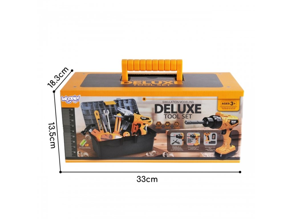 Sada nářadí Woopie Little Handyman se šroubovákem v pouzdře je perfektní hračka pro malého kutila. Tato komplexní sada s 39 dílky je skutečnou dílnou v krabici! S funkčním elektrickým šroubovákem s funkcí přímočaré pily a řadou nástrojů bude vaše dítě moci napodobovat dospělé a rozvíjet jejich dovednosti. Hračka je bezpečná a odolná a přiložená sada nářadí usnadňuje skladování a přepravu.