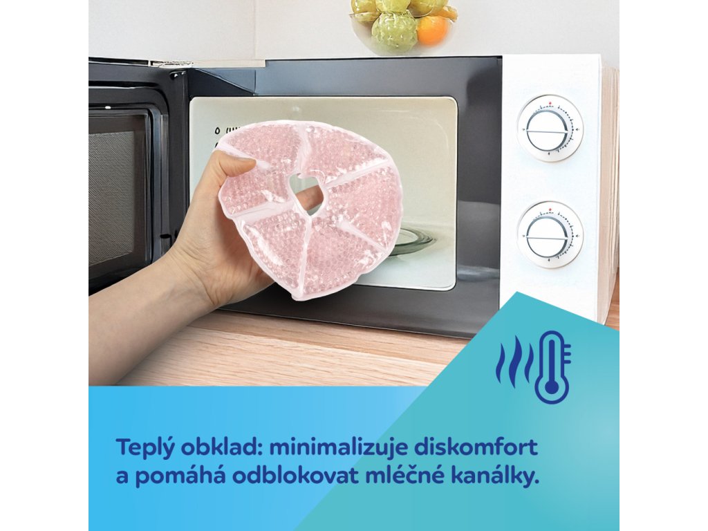 Hřejivý obklad napomáhá uvolnění mlékovodů a podporuje tok mléka.