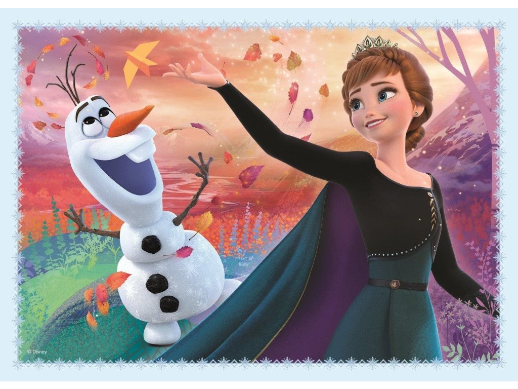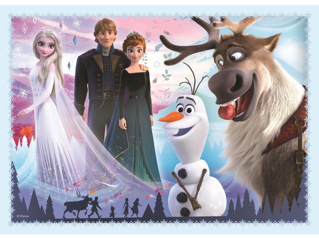 Puzzle Ledové království pro děti sestávající ze 4 nezávislých puzzle, určené pro všechny fanoušky Frozen. Po vyřešení hádanky vzniknou čtyři obrázky, každý o rozměrech 285 x 205 mm. Pestrý počet prvků (35,48, 54, 70) umožňuje zábavu mladším i trochu starším fanouškům puzzle.