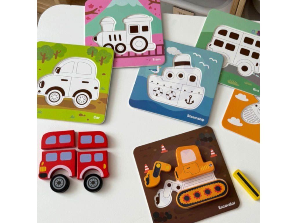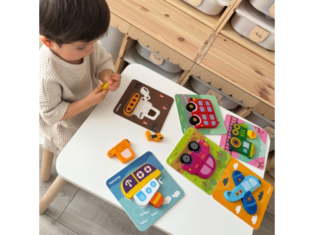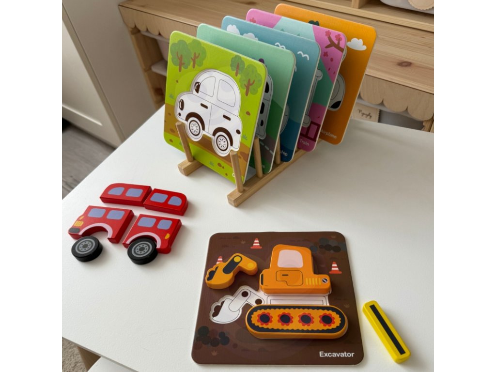 Puzzle s vozidly – Dřevěná zábava plná barev a radosti!