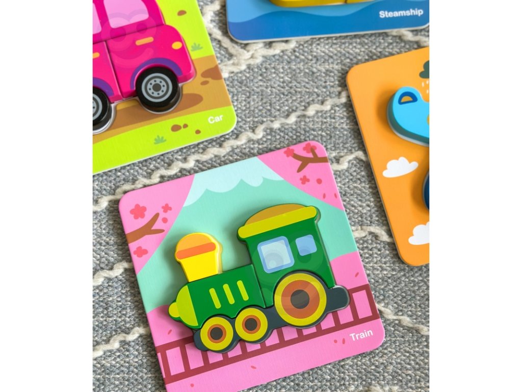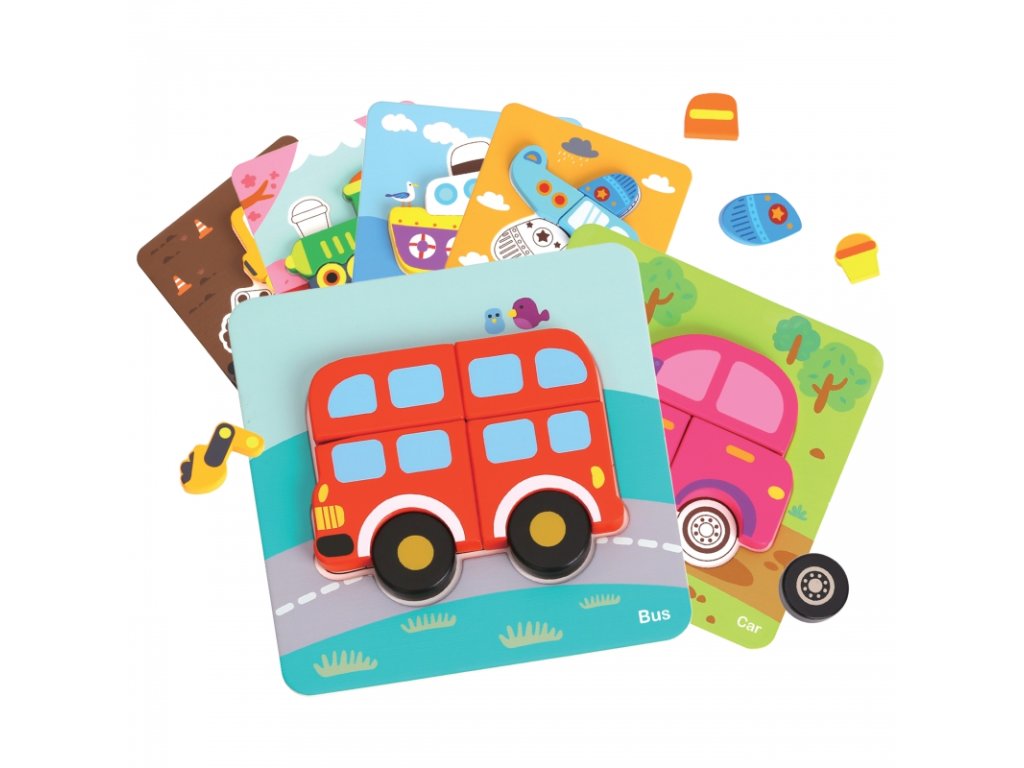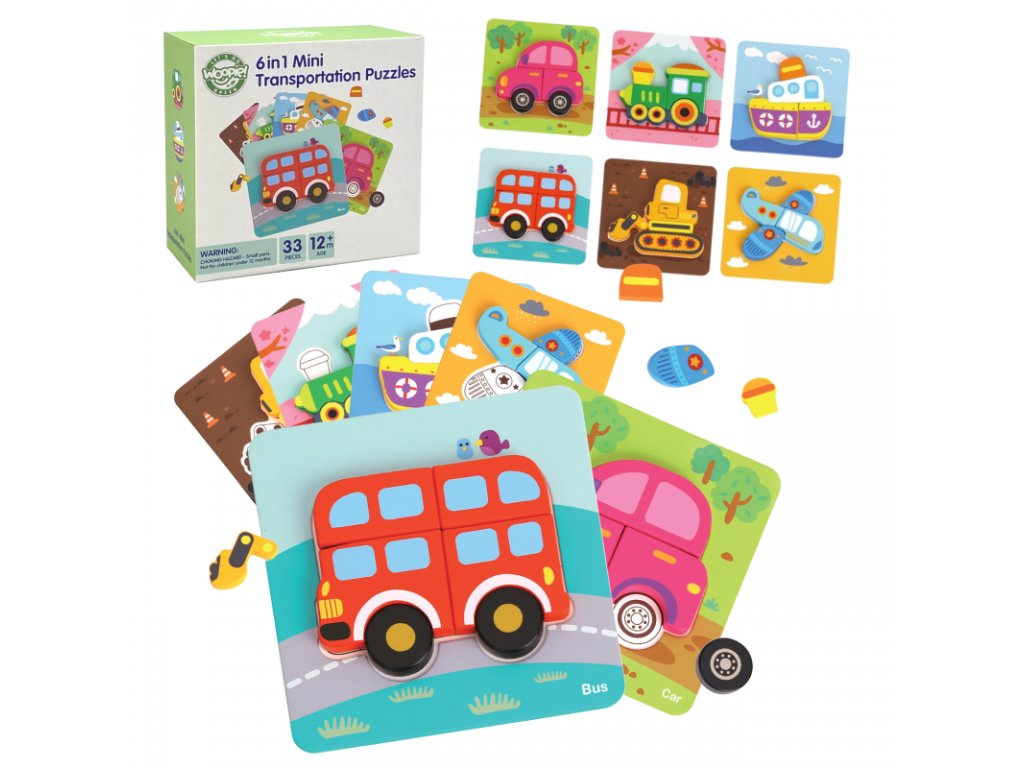 WOOPIE Dřevěné puzzle Dopravní prostředky 6v1