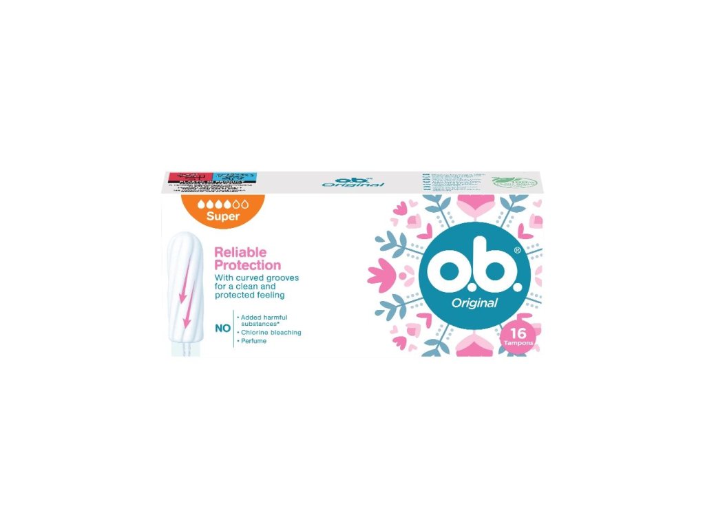 o.b.® Original Super je náš klasický tampon vhodný pro silnější menstruaci . Díky stočeným drážkám poskytuje spolehlivou ochranu a technologie StayDry udržuje šňůrku suchou.