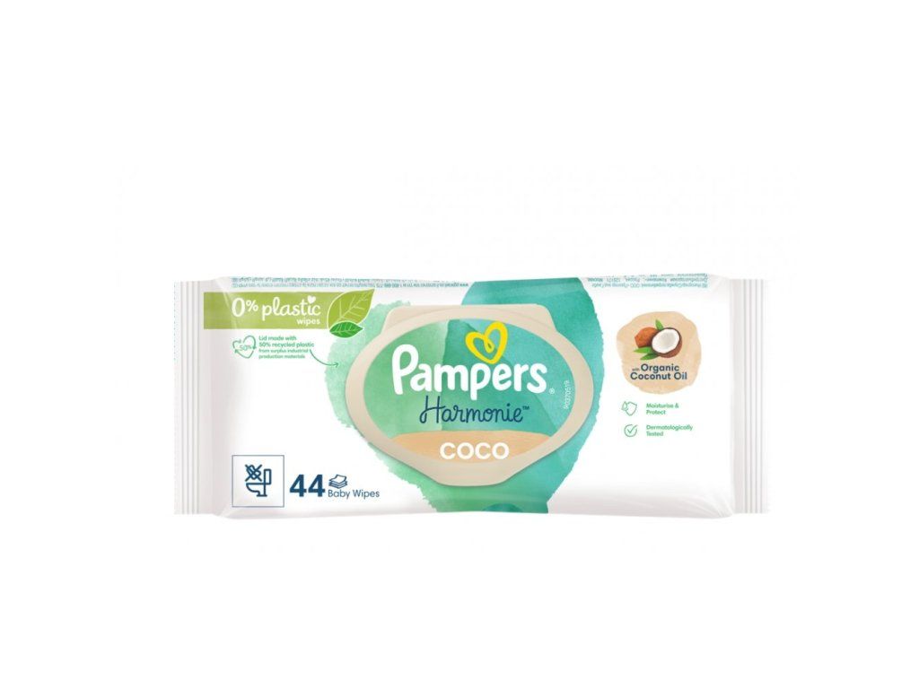 Dětské čisticí ubrousky Pampers Harmonie Coco obsahují organický kokosový olej, který hydratuje a chrání citlivou pokožku vašeho děťátka. Obsahují 0 % plastů, jsou vyrobené pouze ze 100% rostlinných vláken. Enzymy v moči a stolici mění pH pokožky a zvyšují riziko podráždění a vyrážky. Jedinečné složení dětských čisticích ubrousků Pampers Harmonie Coco je dermatologicky testované a chrání přirozené pH pokožky lépe než vodou navlhčená bavlněná látka. Ubrousky tak snižují riziko podráždění pokožky. Protože jsou vlhčené čisticí ubrousky Pampers Harmonie Coco navržené s ohledem na citlivou pokožku novorozenců, jsou bez alkoholu a barviv.