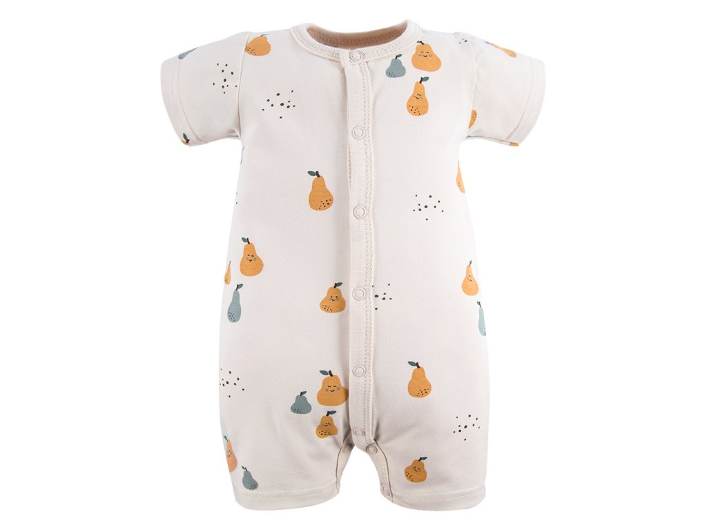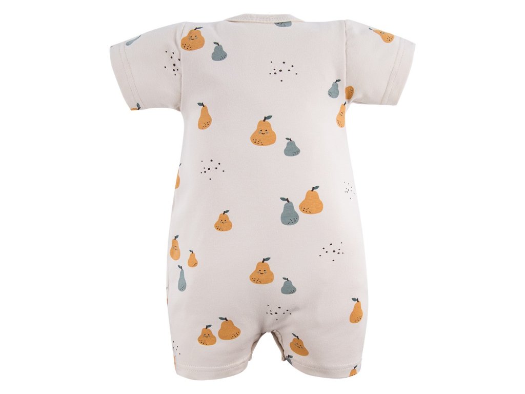 Dětský Rampers neboli letní overal z kolekce „PEARFECT“ z měkkého a příjemného na dotek bavlněného materiálu s potiskem vytvořeným barvami bezpečnými pro děti.