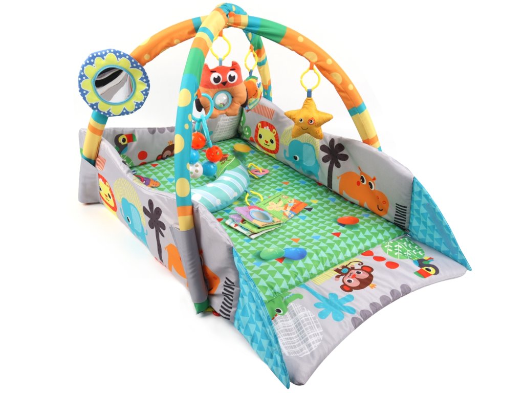 - Vzdělávací podložka s hrazdičkami - Rozložené boky a dvě vyztužené tyče umožňují zavěšení hraček v různých konfiguracích. Ideální volba pro malé děti, které se učí chytat a pozorovat.