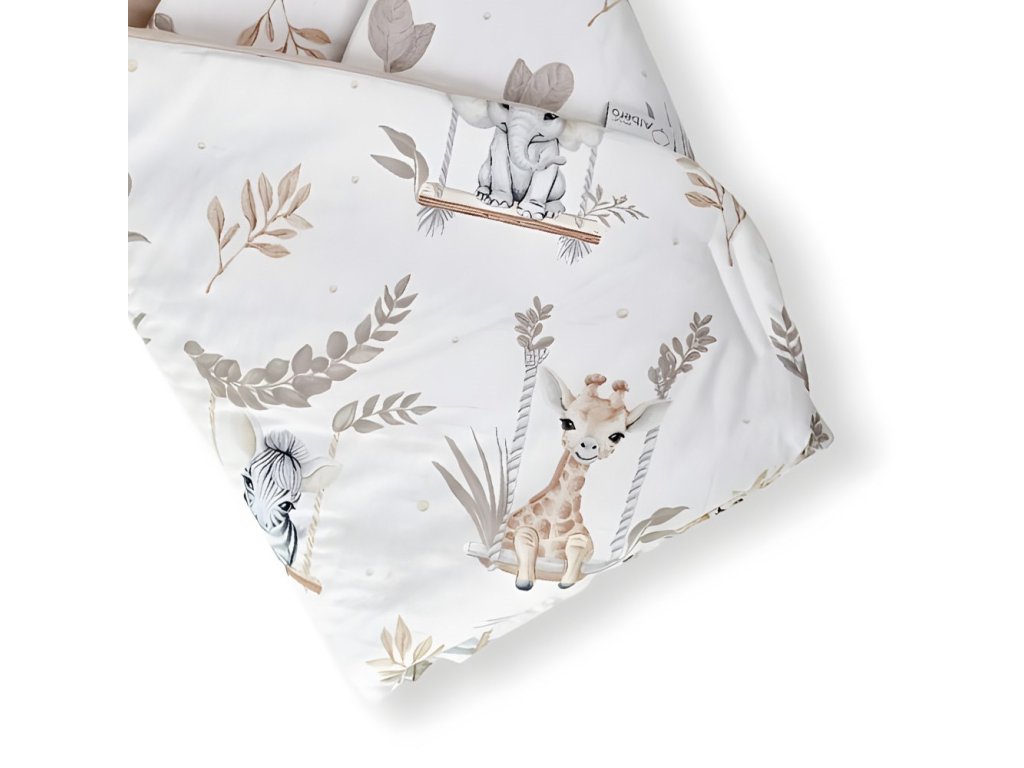 Vyrobeno z bavlny, látky vyrobené ze 100% přírodních vláken. Tento materiál díky své struktuře udržuje teplo a absorbuje vlhkost a zároveň je příjemný a jemný k pokožce. Saténová bavlna je vhodná pro alergiky. Potisk na látky je ekologický potisk, bezpečný pro nejmenší.