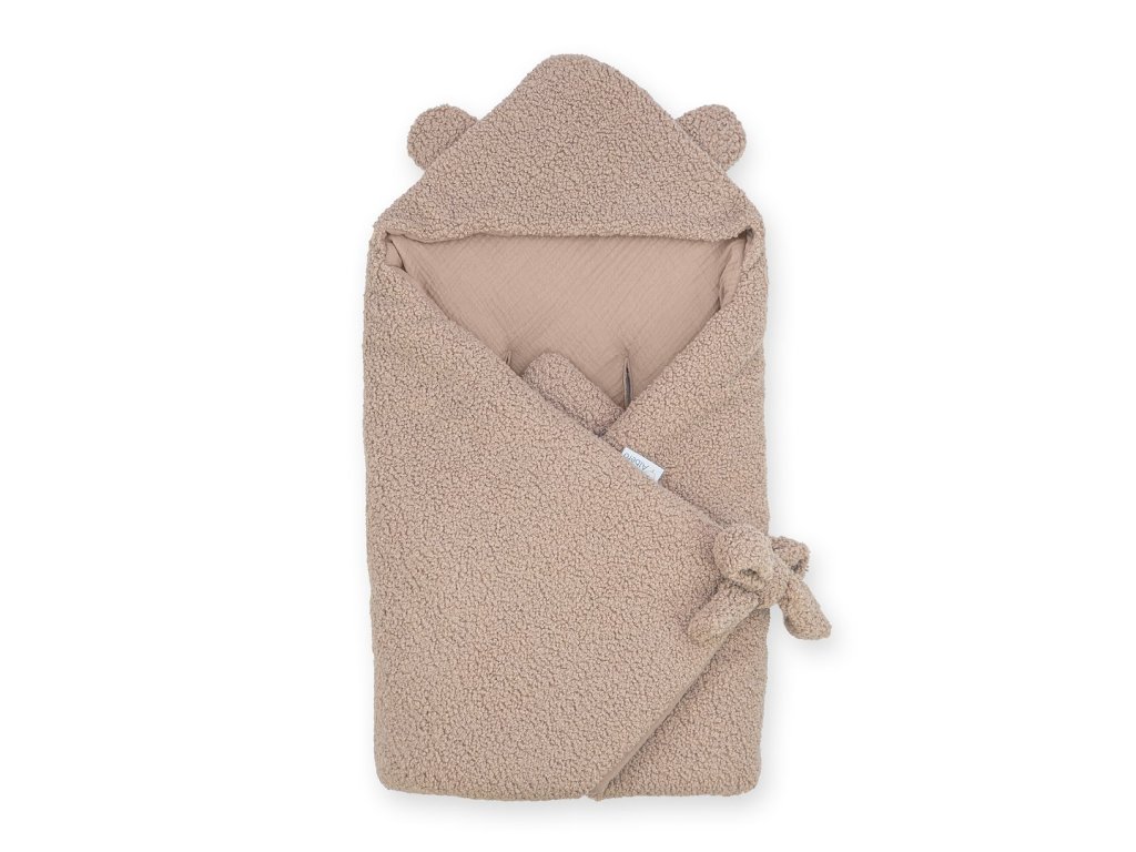 ALBERO MIO Dětská zavinovačka do autosedačky COTTON MUSLIN & BOUCLE - karamel
