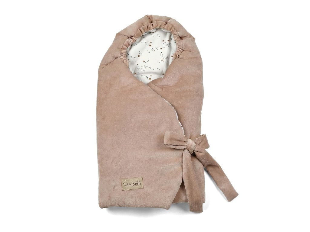 - Vnější vrstva zavinovačky je vyrobena z bavlněného sametu, který vašemu miminku ještě více zpříjemní cestu. Velur je měkký, jemný a příjemný, poskytuje dítěti pocit bezpečí a maximální pohodlí.