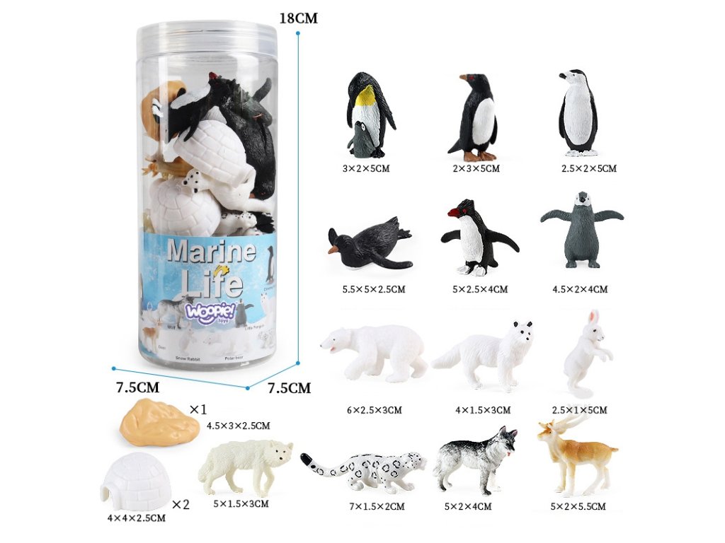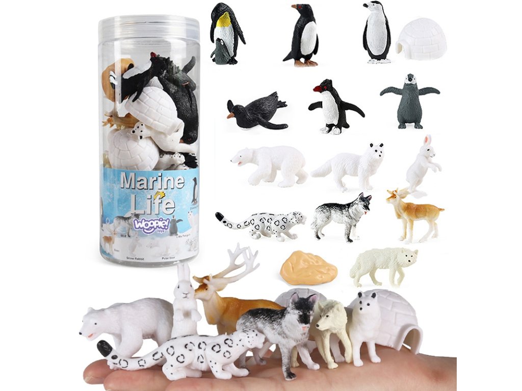 Sada figurek WOOPIE je perfektní pro každého fanouška arktických zvířat. Sada obsahuje 13 arktických zvířat, dva iglú a skálu. Tyto realisticky vypadající figurky obohatí sbírku mladého sběratele , poslouží vzdělávacím účelům a poskytnou zábavu , která rozšíří možnosti fantazie a kreativity vašeho dítěte.
